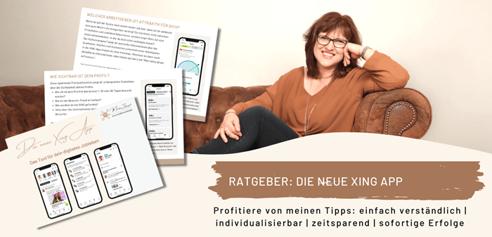 Abonniere meinen Newsletter mit Tipps zur digitalen Sichtbarkeit. Als Dankeschön erhältst du den kostenlosen 30-seitigen Ratgeber "Die neue XING App". In diesem Ratgeber erhältst du über 20 Tipps, wie du die neue XING App für dein digitales Jobleben nutzen kannst.